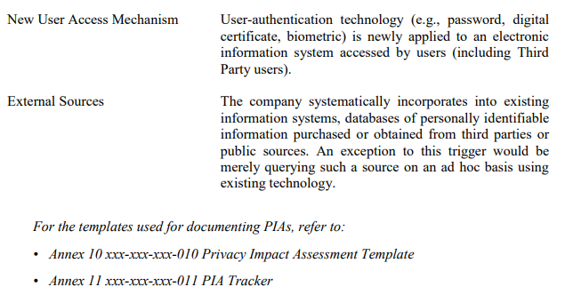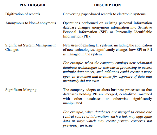 • Privacy Impact Assessment;