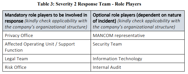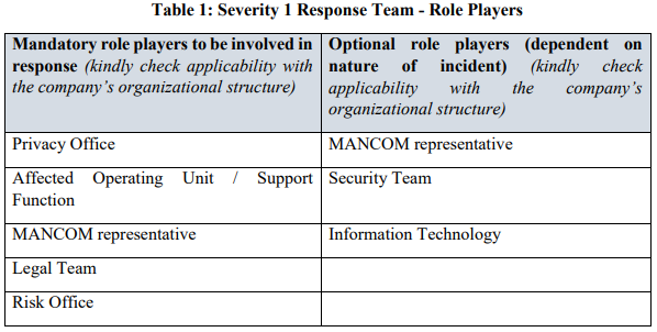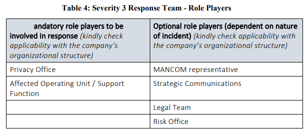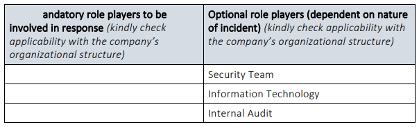 Based on the severity of an incident, different role players may need to be involved. The sections which follow provide an indication of the role players who would need to be involved in the various severity categories of incident, but the actual role players who will be involved will need to be determined based on the specific nature and circumstances of any incident.