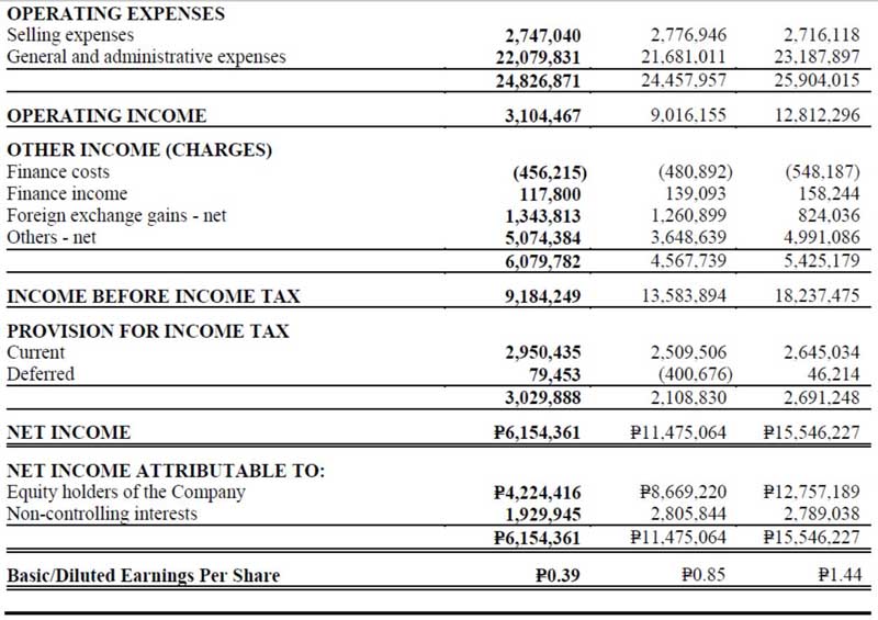 TDI was able to reverse the loss of Php172 million in the first half of 2014, generating an income of Php273 million in the second half of 2014. It ended 2014 with an unaudited net income of Php101 million.
